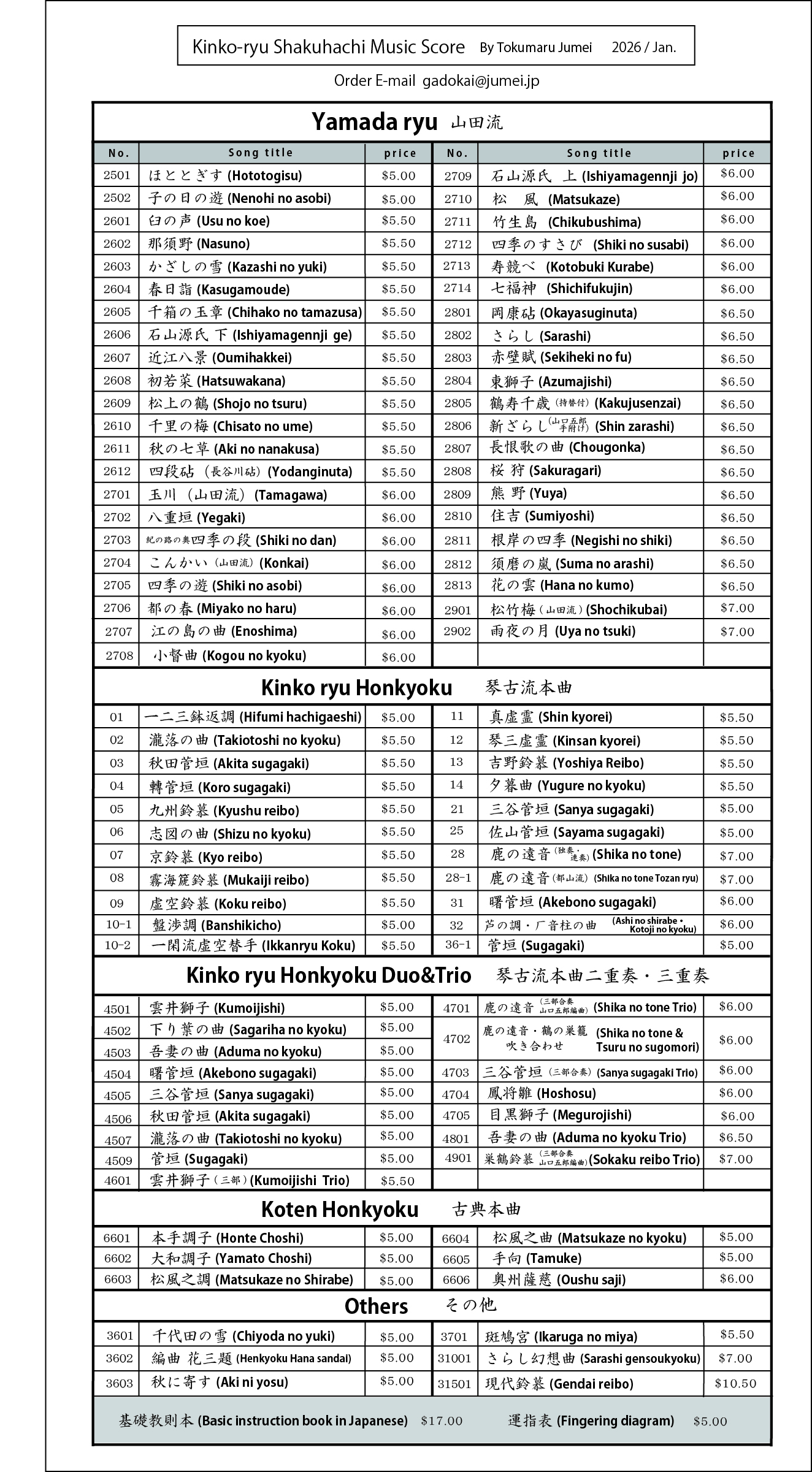 Due to various circumstances, we will be revising the prices of our sheet music starting January 2026.